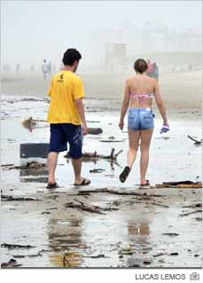 Apesar da paisagem não agradar e da precipitação pluviométrica insistir, a praia não foi esvaziada. A tradicional caminhada ao final da tarde foi mantida por diversas pessoas. O jogo de bocha também. Os tradicionais campeonatos de futebol no Centro e na Zona Sul também serviram de compensação pela ausência de um sábado ensolarado.