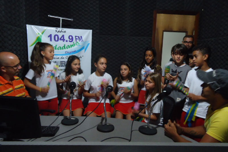 A Rádio Cidadania Digital (104.9 FM) apresentou o último programa do Projeto Rádio Cidadania Mirim nesta quinta feira, dia 4. Desde outubro, foram cinco programas de interação com alunos, professores e a direção da Escola Municipal de Ensino Fundamental Ângelo Zanellato. “A participação ao vivo nesta semana contou com os alunos da 5° ano que apresentaram uma paródia da música da Grande Família. O projeto foi coordenado pelo professor Roni, de Educação Física, que juntamente com os alunos compôs e ensaiou a canção, traçando um paralelo com a família Zanellato”, enaltece o diretor da emissora, Cláudio Serafim