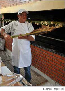 Há opções para todos os gostos e bolsos. O clichê é válido para a gastronomia da 20ª Festa da Cultura Açoriana de Santa Catarina. Ao todo o evento conta com cinco restaurantes montados na Praça São Donato. No espaço da Colônia de Pescadores Z-33, por exemplo, a refeição para três pessoas com tainha na taquara, arroz, pirão e salada está por R$ 40. Uma alternativa é também os espetinhos de filé de peixe a R$ 5.