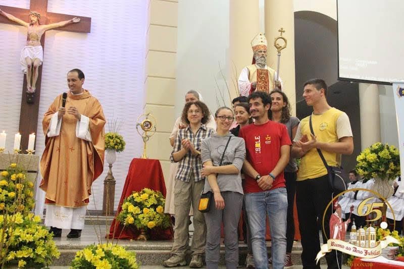 Além de conceder uma relíquia de São Donato, uma comitiva de Arezzo desembarcou no Brasil para acompanhar a 65ª festa do padroeiro de Içara. Para marcar este momento de cordialidades, o grupo formado por jovens e religiosas italianas foi convidado para fazer parte de uma das celebrações, a missa da família, no último dia 7. A missa presidida pelo padre Oscar teve como tema “O amor é nossa missão”, além da benção das famílias e das alianças. Foram enviados ainda os líderes que visitarão as comunidades.