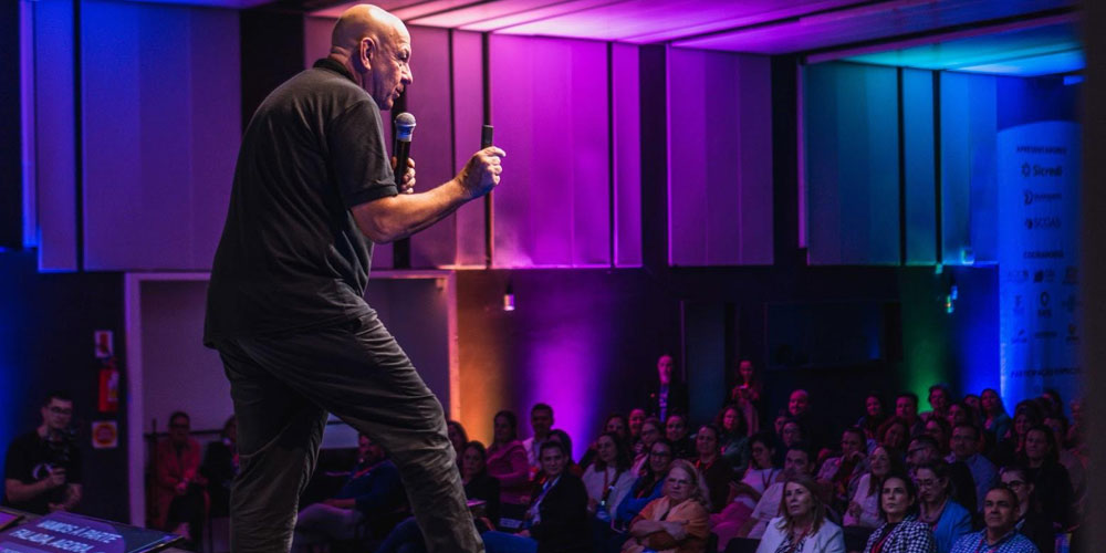 No segundo dia do evento, o comportamento humano esteve no centro das discussões. Em sua palestra, o neurocientista e futurista Álvaro Machado Dias falou sobre a era da metamodernidade. “Trata-se da transformação de mentalidade que vem acontecendo no mundo a partir do desenvolvimento e proliferação da inteligência artificial generativa”, explica o palestrante.