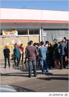 As senhas impressas para o bazar do Hospital São Donato foram insuficientes na manhã desta quarta-feira, dia 27. Conforme a diretora Cleide Geremias, os 100 números distribuídos às 7h30 não atingiram todas as pessoas que estavam na fila. Ainda segundo ela, alguns dos compradores chegaram nos primeiros minutos da madrugada. E, para fazer o tempo passar, investiram nos jogos de canastra.