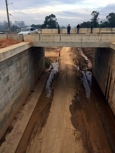 “A execução não ocorreu por falta de detalhes do projeto. A travessia não estava prevista no projeto original. É uma área com água muito aflorada. Por isso será preciso baixar o nível do lençol freático. Os detalhes foram acertados na semana passada e a liberação para a obra ocorreu hoje”, contrapõe o secretário municipal de Planejamento, Arnaldo Lodetti Júnior. Caso a preparação do local para a pavimentação de 50m para cada lado do viaduto não inicie até quinta-feira, um novo bloqueio será realizado.