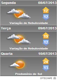 Na terça e quarta-feira ocorrem nevoeiros ao amanhecer com tempo seco e sol em SC. Condições de chuvisco ou chuva fraca no início da manhã da Grande Florianópolis ao Litoral Norte. Temperatura baixa na madrugada e amanhecer de terça-feira, mas com elevação a partir de quarta-feira.