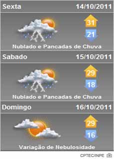 No sábado, dia 15, haverá variação de nuvens do Extremo Oeste ao Sul do estado. Já nas demais regiões as condições serão de chuva, especialmente, na madrugada, manhã e noite. Isto ainda por influência do cavado.A temperatura diminui um pouco com relação ao dia anterior.