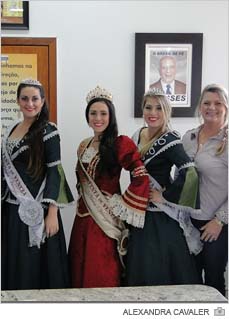 As beldades da 8ª edição da festividade foram recebidas no Paço Municipal pelo secretário de Governo Adelir Cabreira, secretária de Administração Eliana Jucoski e de Articulação Marli de Faveri. Em três dias de festa, os venezianos oferecerão muita polenta, macarrão, fortaia e iguarias da culinária italiana. A comemoração será pelos 121 anos de colonização e 54 anos de emancipação administrativa.