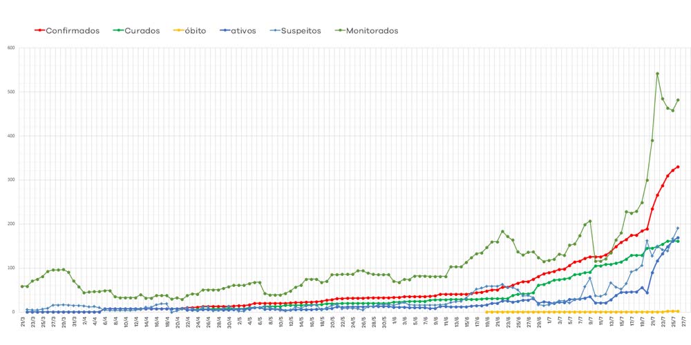 O número de casos ativos de covid-19 já ultrapassa inclusive os casos curados, por ora, correspondente a 161 içarenses. O boletim epidemiológico divulgado pelo Município neste domingo aponta também 191 casos suspeitos, dos quais, três estão em tratamento clínico-hospitalar e um em UTI. Há também 482 suspeitos em monitoramento. Além disso, a cidade computa até agora dois óbitos.
