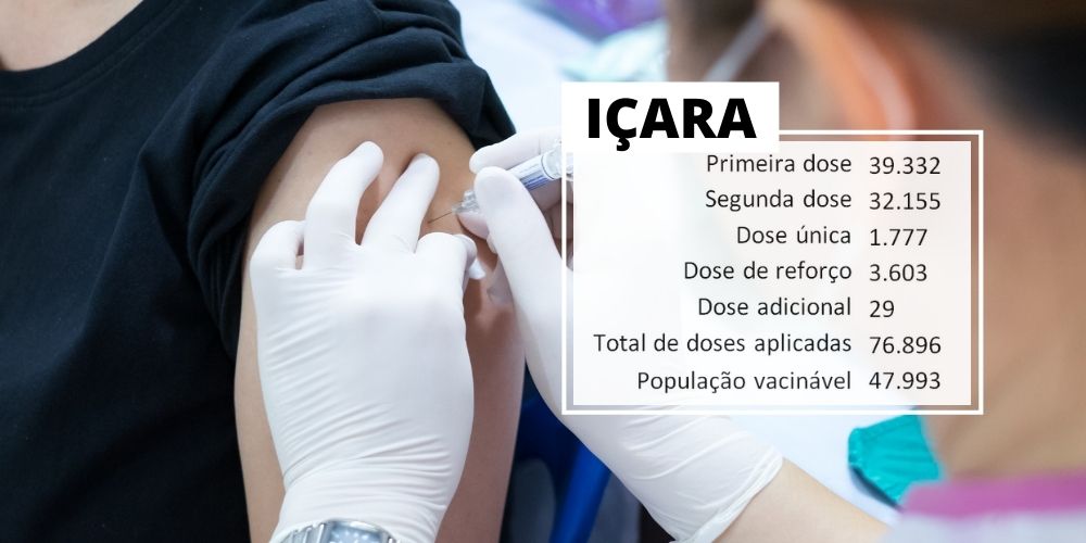 Atualizados até esta sexta-feira, dia 26, os dados do Vacinômetro do Governo do Estado mostram que a imunização contra a covid-19 já atingiu 70,70% da população vacinável em Içara. Conforme a estimativa inicial, 47.993 içarenses estão na faixa etária contemplada pela campanha de vacinação, acima de 12 anos de idade. Desses, 33.932 já concluíram o esquema vacinal, sendo 32.155 com a segunda dose e 1.777 com a dose única.