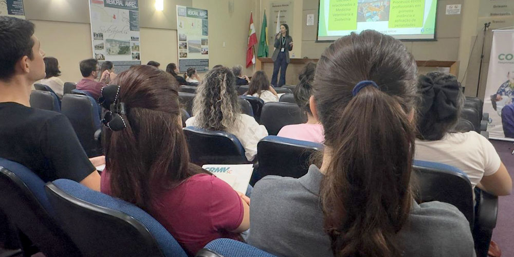 Responsabilidades da profissão na prática. Esse foi o tema principal de uma nova edição do projeto VetConsciente, uma capacitação promovida pelo Conselho Regional de Medicina Veterinária de Santa Catarina (CRMV-SC) em parceria com a Companhia Integrada de Desenvolvimento Agrícola de Santa Catarina (Cidasc), realizado no auditório da Amrec.