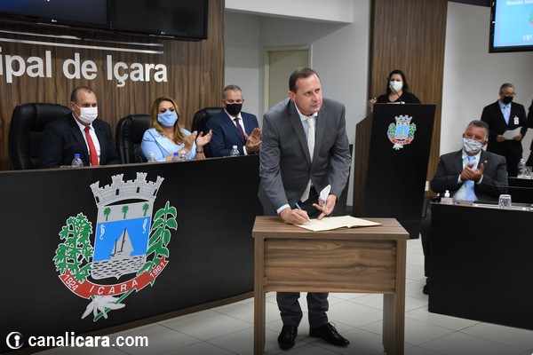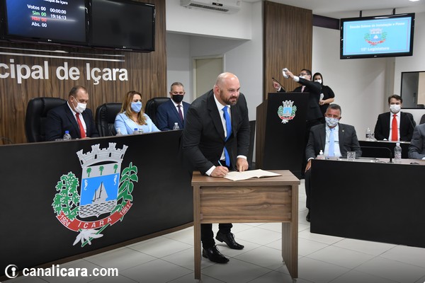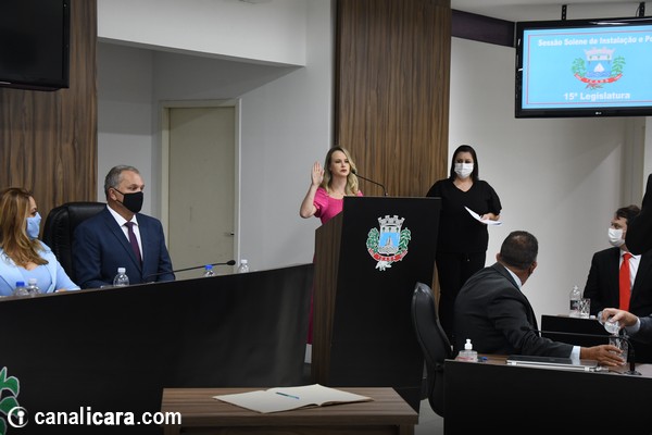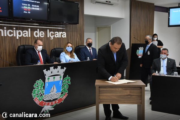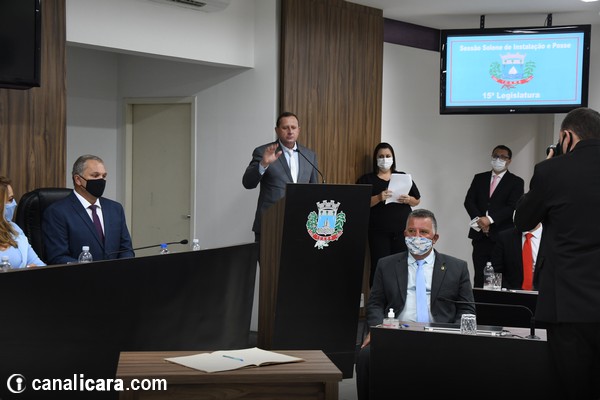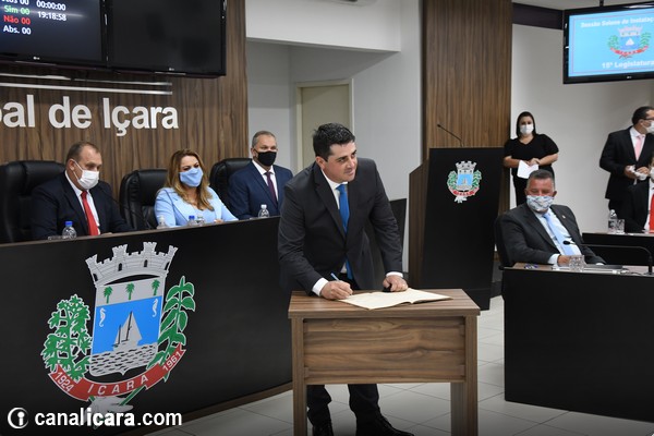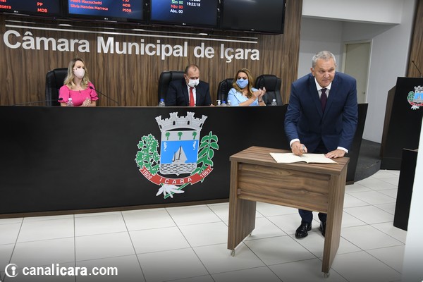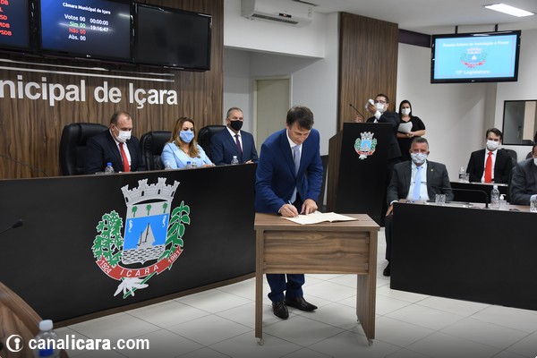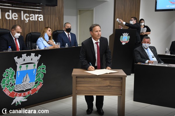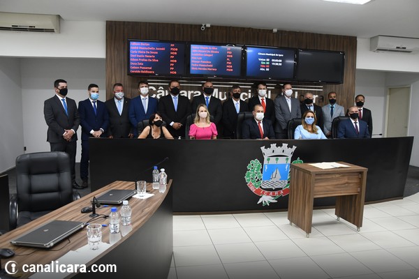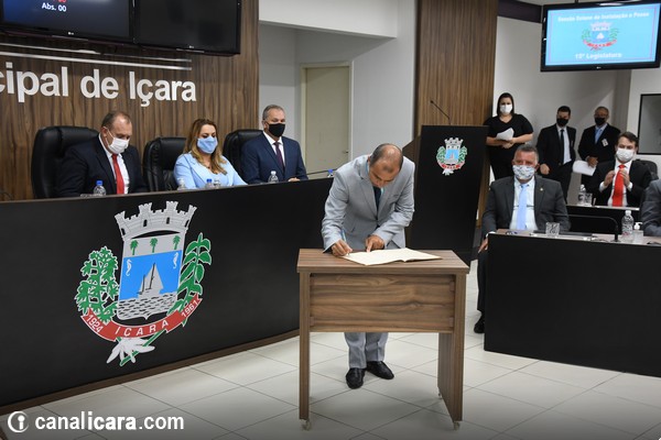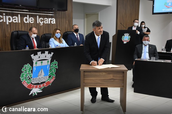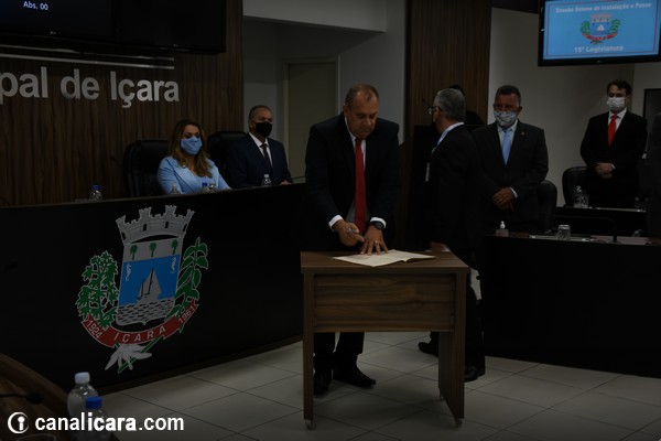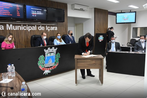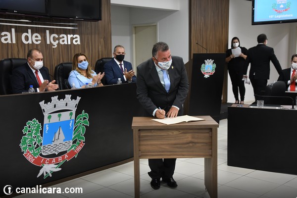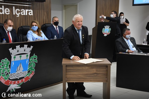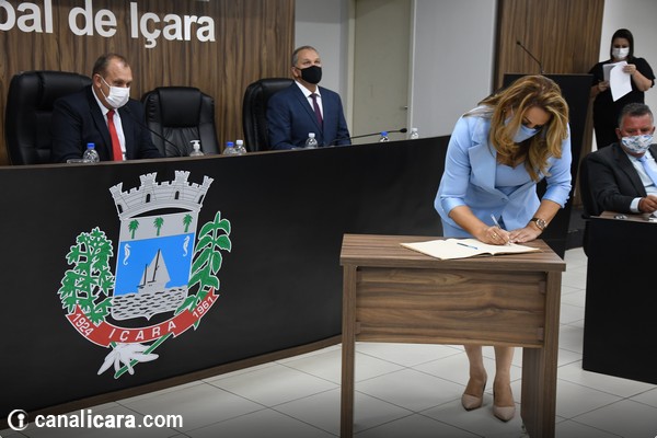 O Poder Executivo e Legislativo de Içara tem novos mandatários a partir desta sexta-feira, dia 1. A posse da prefeita Dalvania Cardoso (PP), do vice Jandir Soratto (PP) e dos 15 vereadores que vão compor a 15ª legislatura da cidade ocorreu na Câmara Municipal em cerimônia restrita aos eleitos, servidores da Casa e imprensa nesta noite. Como determina a Lei Orgânica Municipal, a sessão solene - transmitida ao vivo pelo portal Canal Içara - foi presidida pelo vereador mais votado no último pleito, Geraldo Baldissera (MDB).