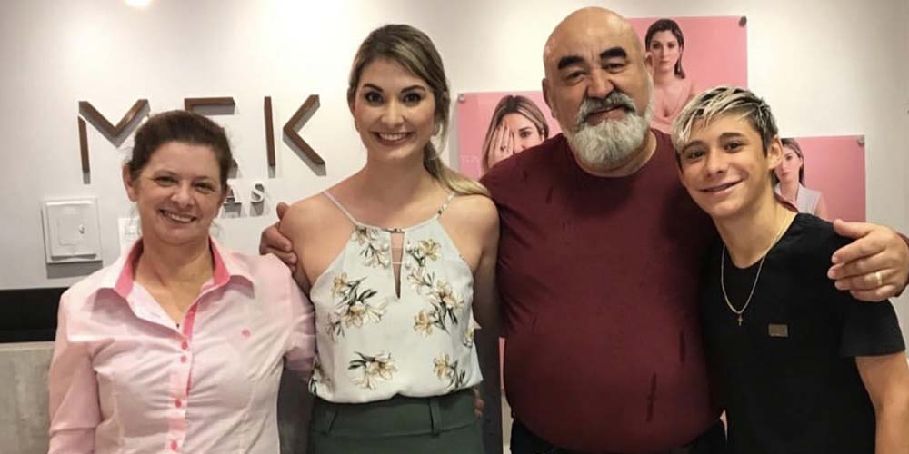 Érica Mendes, empresária à frente da Mek Joias, junto dos pais e do filho, na inauguração de seu mais novo espaço, na Travessa Pedro Padre Baldoncini. Sua loja na Henrique Lage também passa por uma transformação em 2020