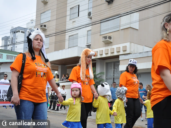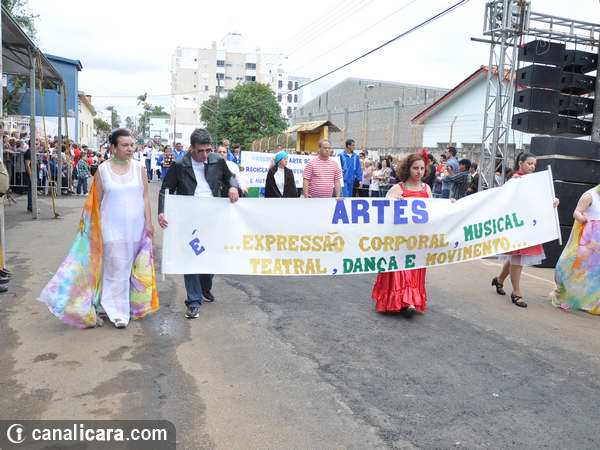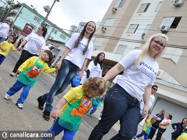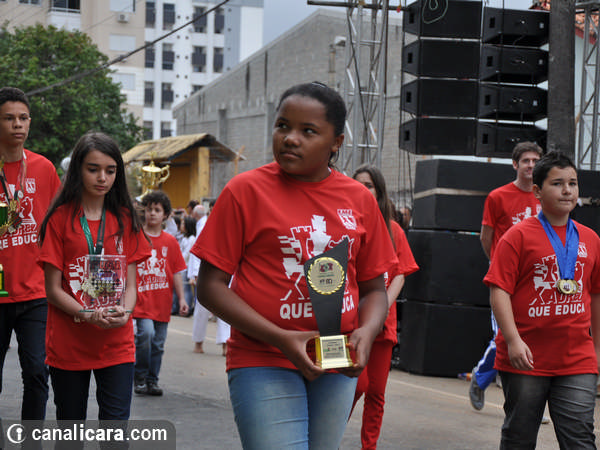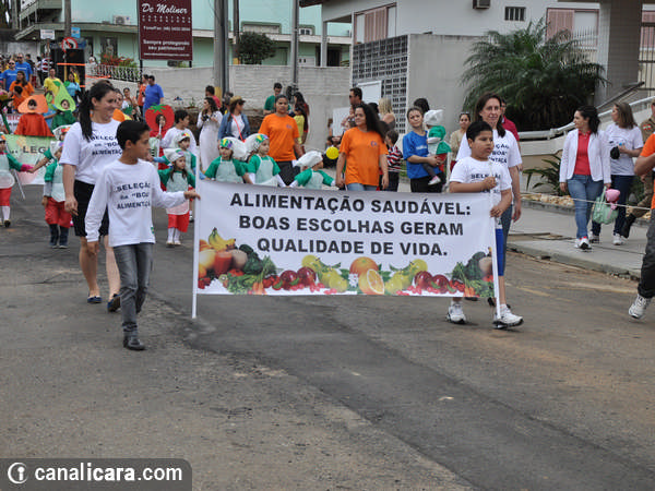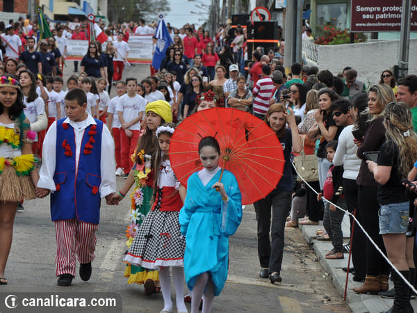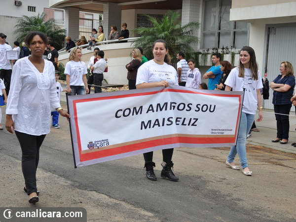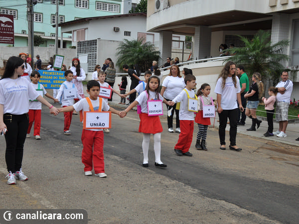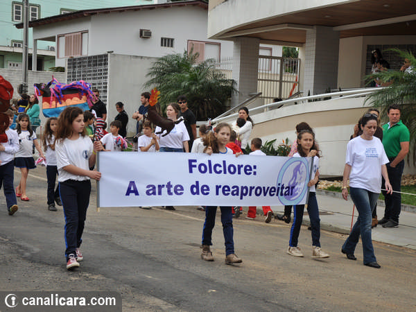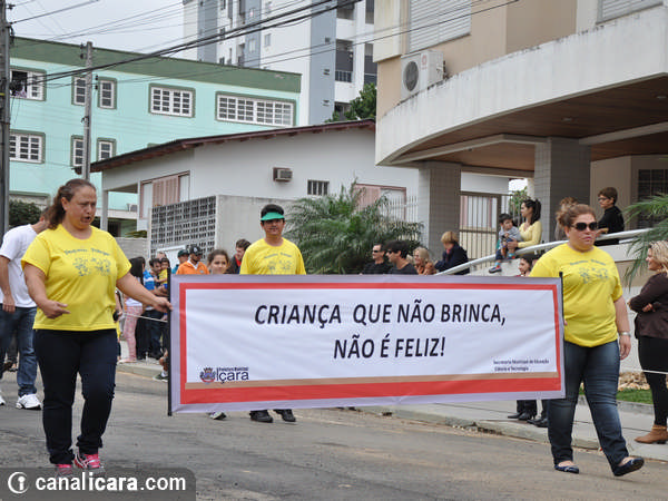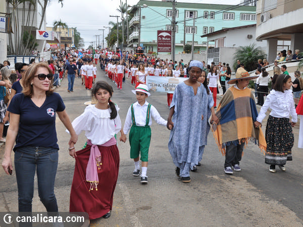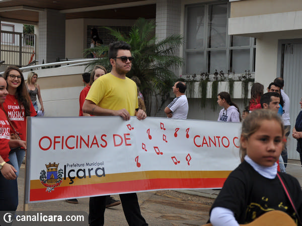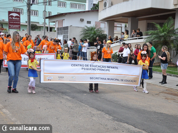 A diversidade ambiental foi enaltecida pelos alunos fantasiados de flores e animais. As crianças entraram também no mundo da literatura, representaram cantores, lembraram as brincadeiras infantis e passearam pelo mundo com trajes típicos de cada etnia. Enalteceram também valores como amor, respeito e amizade. O tom crítico ficou por conta da participação do Movimento Içarense pela Vida pela contrariedade de qualquer negociação sobre a água.