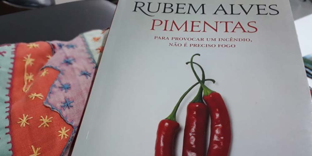 Para provocar um incêndio não precisa de fogo. Em mais uma obra provocante,Pimentas, Rubem Alves deixa um legado com 74 crônicas escritas com a sensibilidade única do eterno psicanalista e escritor. Em um dos artigos, fala da magia sedutora presente na arte de cozinhar. Em um outro, questiona onde esta a nossa esperança nos levando a pensar se ela estaria no sonho de cada indivíduo. Uma livro cheio de vida para viajarmos em suas palavras nestes dias de turbulência.