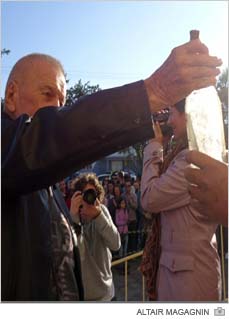 Entretanto, até se encontrar o objeto, foi necessário cavar. Com o cuidado de um arqueólogo que busca uma preciosidade, o integrante da comissão de festeiros Rudi Recco usou as próprias mãos para encontrar a garrafa. Como um troféu, ele ergueu o tesouro, que mereceu uma salva de palmas de quem assistia ao ritual.