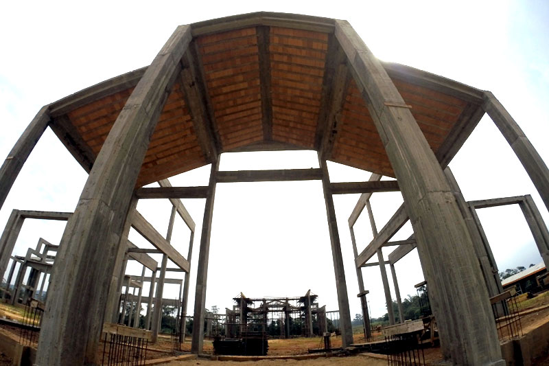 SOBRE A OBRAS - O Santuário Diocesano do Sagrado Coração de Jesus já tem o esqueleto da entrada principal e duas laterais finalizadas. Conforme o membro da Comissão Pró Construção, Carlos Roberto Roncáglio, a expectativa é a de que as paredes estejam erguidas e a cobertura finalizada até junho de 2016 para que missas já possam ser celebradas em seu interior. Para contribuir os fieis poderão requisitar os carnês durante a festividade.