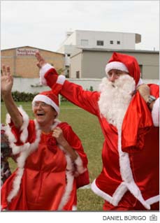 Sorvetes e picolés foram os amenizadores da ansiedade que tomou conta dos alunos da Associação de Pais e Amigos dos Excepcionais (Apae) de Içara na tarde de quarta-feira, dia 19. De olhos vidrados ao céu, todos aguardavam a chegada dos protagonistas do Natal. Andando de um lado ao outro, Rogério Santos estava na expectativa por um agrado do Papai Noel. Com seus mais de 30 anos, ele relatou sua participação e sentimento referente à instituição. “Gosto muito. Já sei escrever, passeio aqui e já até marchei no 7 de Setembro”, elencou.