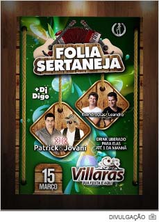 O casarão do bairro Mareli vai abrir por duas noites neste final de semana. No dia 15 a Folia Sertaneja do Villaras terá Patrick & Jovani, Evandro Dias & Leandro, DJ Digo e drinques liberados para elas até 1h. Já no dia 16 será a Festa Absoluta com Neguinho & Emanuel, Leo Jr & Bruno, Benito de Lorenzi e DJ Euzébio. Na compra de uma vodka Absolut a segunda sairá na faixa.