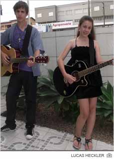 Eduardo prefere o som da guitarra. “Rock leve”, lembra ele. Já a colega curte mais o sertanejo. Mas no palco ambos se entendem. “Foi meu pai quem me levou para música e a cada dia vejo que este é o caminho que desejo trilhar”, manifesta Eduardo. “Canto desde os quatro anos em coral, e sei que a música faz parte da minha vida. Agradeço a todos pelo incentivo que sempre tive”, completa Ana Paula.
