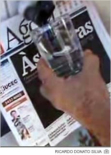Um teste inusitado foi realizado por Ricardo Donato Silva nesta segunda-feira, dia 24. O morador do bairro Jardim Elizabete abriu a torneira e novamente não tinha água. Mas desta vez resolveu gravar isto de uma forma curiosa. Ele percebeu que o encanamento estava chupando ar. E para comprovar, encheu um copo de água e registrou o caminho inverso da água. Ao fundo colocou uma edição do Jornal Agora na intenção então de comprovar a localidade e a data. Abaixo segue o link para o vídeo.