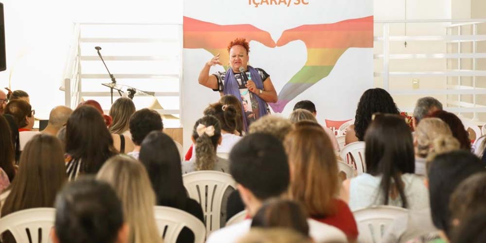 Capacitar para lidar com as diferenças. Esse foi um dos temas trabalhados no III Encontro Regional de Direitos Humanos e Diversidade de Içara nesta terça-feira, dia 19. O evento no auditório da Associação dos Aposentados reuniu profissionais das áreas da educação, saúde e assistência social. Neste ano participaram Keila Simpson, que atua com movimentos sociais desde 1991 e iniciou o trabalho com prevenção à Aids na Bahia, e Kaio Lemos, que é escritor, mestrando em Antropologia pela Universidade Federal do Ceará.