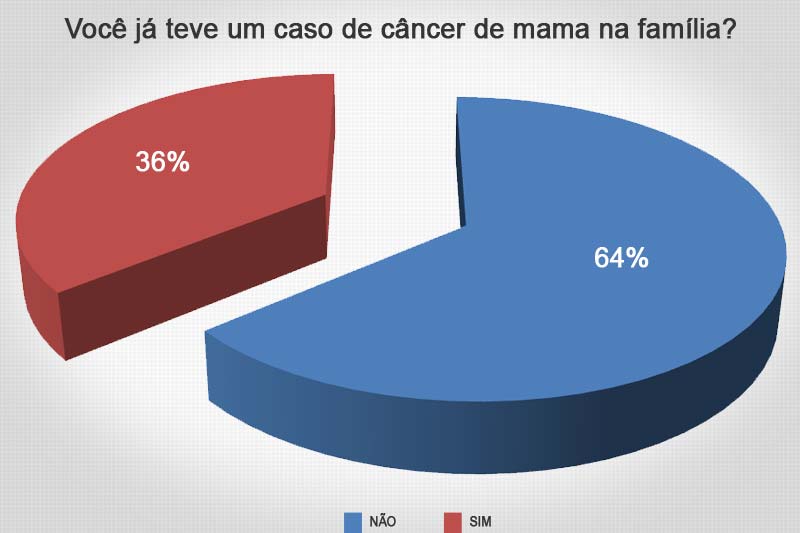 Você já teve um caso de câncer de mama na família? Dentre os leitores que responderam espontaneamente a enquete do Canal Içara pertinente ao Outubro Rosa, 64% indicaram que não e 36% apontaram que sim. O questionamento realizado de 13 a 19 de outubro teve a participação ao todo de 39 internautas.