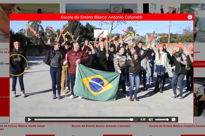 A Escola de Educação Básica Antônio Colonetti está na disputa do Festival Coca-Cola com a bola no pé e nas mãos, além do molejo do samba. São 30s de vídeo que representam o compartilhamento de momentos de ouro para inspirar os atletas brasileiros nas Olimpíadas de 2016. “Na região da nossa abrangência se inscreveram 15 escolas. Dentre elas, serão selecionadas 10”, ressalta a diretora Ana Paula Conti.
