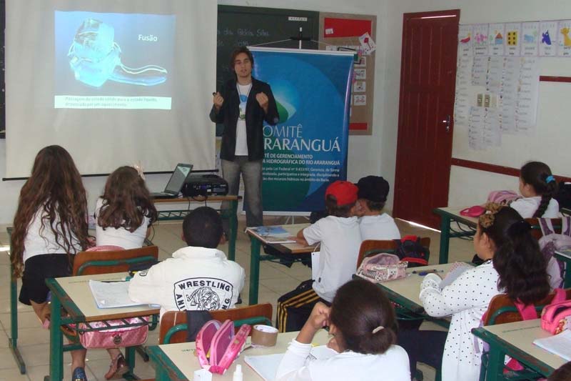 O Curso Infantil "Brincando de Preservar" chegou aos alunos do quarto ano da Escola de Educação Fundamental Professora Maria da Glória Silva, no bairro Aurora, em Içara. No primeiro módulo eles aprenderam como funciona e como cuidar da bacia do Rio Araranguá. As atividades são realizadas pelo Comitê Araranguá junto com a extensão da Unahce/Unesc.