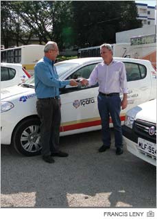 “Dois veículos vão ser usados nos serviços das ESFs do município. O outro dará suporte para as atividades da coordenação de Atenção Básica”, explica o coordenador de Vigilância em Saúde, Gustavo Pacheco. “Os carros foram emplacados ontem (quarta-feira) e hoje já foram liberados para os serviços”, lembra o coordenador da frota de veículos da Saúde, Dilnei Darci Lima.