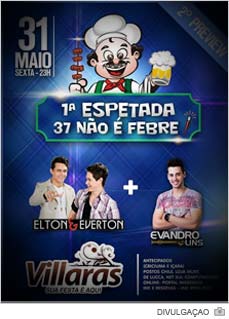 A primeira Espetada 37 não é febre vai ter uma segunda edição do preview nesta sexta-feira, dia 31. A festa acontecerá no Villaras. O casarão no bairro Liri receberá Elton & Everton, além de Evandro Lins. Os ingressos podem ser encontrados no Posto Chile e na Loja Mury por R$ 20. Já no domingo, a balada começará às 19h com Patrick & Jovani e Leo Santoro.