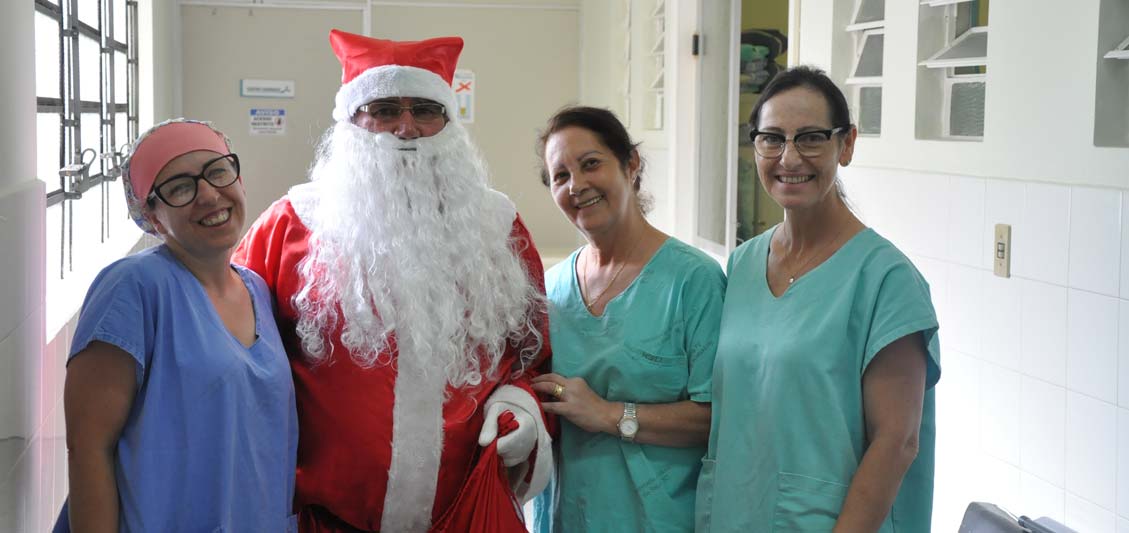 Dezenas de bombons foram distribuídas no Hospital São Donato pelo bom velhinho neste sábado, dia 23. A visita antecipada do Papai Noel foi proporcionada com o carinho fraternal aos pacientes e colaboradores, além de palavras de fé de Onério Consoni. "Sempre foi um desejo visitar o hospital, mas ainda não tinha buscado uma oportunidade. Faço este trabalho há 22 anos, mas é sempre emocionante”, coloca.
