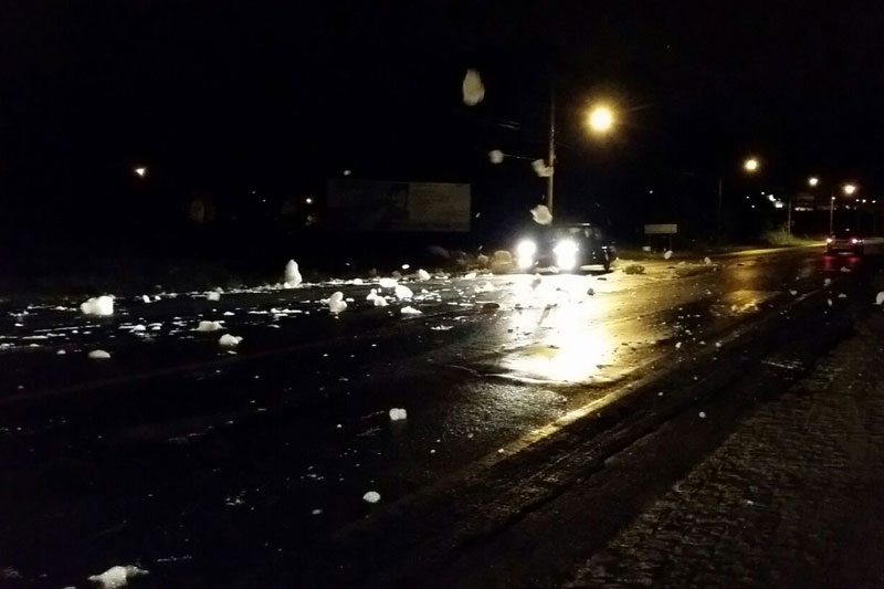 A espuma não ficou restrita somente ao Rio Três Ribeirões na noite desta quinta-feira, dia 3. O material recorrente no afluente desta vez ocupou também parte da Rodovia Deputado Paulino Búrigo (SC-445) no trecho entre o bairro Liri e Nossa Senhora de Fátima. "A espuma começou por volta das 23h20. Alguns motoristas reduziram a velocidade, mas o material não demonstra perigo até agora", coloca o policial militar rodoviário, sargento Osvaldo.