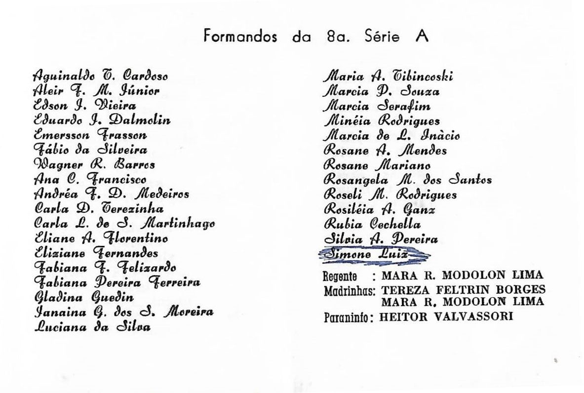“Após encontrar o colega de escola Rogério Lima conversamos sobre nossa época ali no Salete Scotti dos Santos. Surgiu a ideia de resgatarmos memórias. Já temos um grupo de Whatsapp para esse resgate e uma possível confraternização. Estamos em 10 pessoas, mas gostaríamos de encontrar mais pessoas da nossa época de escola”, indica uma das integrantes, Simone Cândido.