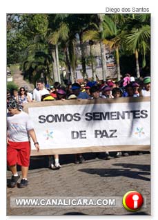 Estudantes caminham pela paz