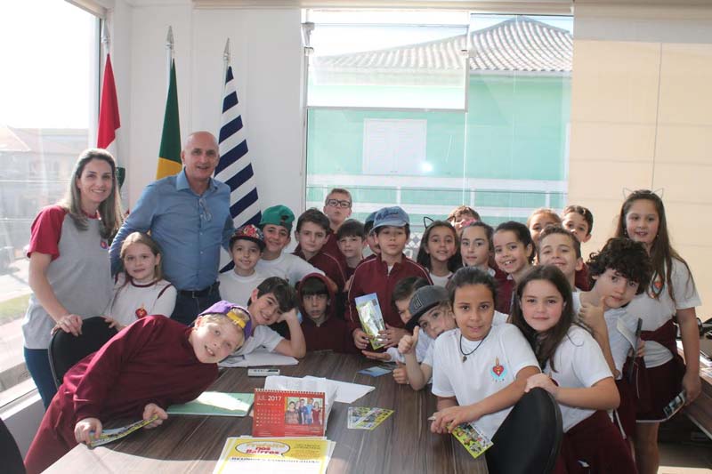 Estudantes do 3º e 4º anos do Colégio Cristo Rei de Içara foram recebidos em Balneário Rincão pelo prefeito Jairo Celoy Custódio (PMDB) na manhã desta quinta-feira, dia 29. A visita faz parte do trabalho de pesquisa sobre Içara. De acordo com a professora Jana Brigido, antes de ir ao Paço Municipal, os alunos passaram por comunidades que fizeram parte da história içarense, por exemplo, Urussanga Velha e Lagoa dos Esteves. Jairo respondeu todos os questionamentos e fez fotos com os estudantes.