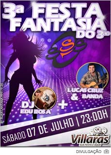 Os formandos da Escola Professora Salete Scotti dos Santos vão esbanjar a criatividade neste final de semana. Afinal, a festa será à fantasia. Trata-se da terceira edição do evento. Desta vez a balada acontecerá a partir das 23h no Villaras. O agito no casarão do Mareli terá Lucas Cruz, além do DJ Edu Rosa. Aos interessados resta saber que os ingressos podem ser adquiridos com os alunos do terceiro ano do ensino médio.
