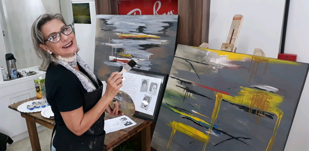 "Meu gosto pela pintura e artesanato começou muito cedo. Aos 12 anos já pintava com lápis de cor em qualquer pedacinho de madeira que eu achava. Com 14 anos comecei a desenhar pessoas. O artesanato estava em minhas veias. Inventava algo em tudo que via", relembra a artista. Mas segundo ela, a arte abstrata é o que melhor a define. "São criações minhas, mas que cada um submete a sua interpretação. As telas utilizam o cinza em contraste com cores vivas", completa. “Temos que valorizar o que temos em nossa cidade. Precisamos colorir o mundo”, pontua a empresária Norma Ferro.