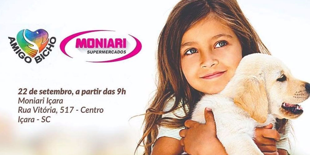 A Feira de Adoção da ONG Amigo Bicho será em parceria com a Pedigree neste sábado, dia 22. O evento acontecerá a partir das 9h no Moniari Supermercados, na Rua Vitória, em Içara. Para garantir um novo lar, não se esqueça do documento. O cadastro é muito importante para a adoção responsável.