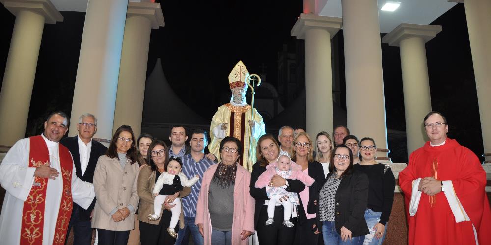 A fé em São Donato faz parte da família da Vovó Laura Laurindo de Mello. "Meu pai era muito devoto", enaltece, aos 80 anos, na transladação da imagem do padroeiro de Içara neste domingo, dia 29. "Para nós é uma alegria poder realizar a paramentação. É um momento de gratidão a tudo o que Cristo fez por nós. Além dos 80 anos da matriarca, tivemos a chegada de três crianças na família. Sempre que precisamos, fizemos nossas orações para São Donato", completa Max de Mello.