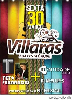 A festa noturna do Villaras estará cheia de atrativos nesta sexta-feira, dia 30. A casa noturna do Mareli abrirá com Teto Fernandes, Identidade Zero, DJ Ney Lopes, além do especial de Rud e Gustavo. Os ingressos para acesso à mansão já estão disponíveis. Em Içara podem ser encontrados no Posto Nicão e na cidade de Criciúma a venda ocorre no Posto Chile da Próspera. Aos homens custa R$ 20 e para as mulheres, R$ 10.