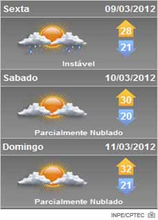 No sábado, Sol entre nuvens em Santa Catarina com pancadas isoladas de chuva entre tarde e noite nas regiões do Meio Oeste e Planalto Sul. Temperatura elevada. No domingo, também presença de Sol com pancadas isoladas de chuva entre tarde e noite na região do Meio Oeste, e, a noite, nas regiões do Litoral Norte, Litoral Sul e Grande Florianópolis. Conforme a Epagri/Ciram, na segunda-feira haverá pouca chuva. Nestes próximos dias os índices variarão dos 16 aos 35ºC.