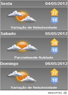 No sábado e domingo, mais nebulosidade pela manhã com chuviscos isolados da Grande Florianópolis ao Litoral Norte. Isto devido a circulação marítima. Nas demais regiões, Sol entre poucas nuvens. Temperatura em elevação. Vento de nordeste, fraco a moderado com rajadas.