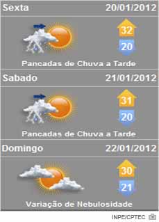 No sábado e domingo o Sol aparece acompanhado de nuvens em Santa Catarina. Entre a tarde e noite há previsão de pancadas isoladas de chuva com trovoadas devido a influência de um cavado e do aquecimento. No Litoral, a chuva pode ocorrer também por vezes na madrugada e manhã.