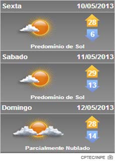 Neste sábado e domingo ocorrem nevoeiros ao amanhecer e Sol em boa parte do dia em Santa Catarina. Entre o fim da tarde e noite a nebulosidade aumenta e há condição de pancadas isoladas de chuva no Oeste, Meio Oeste e até no Sul do estado no domingo devido à influência de um cavado (área alongada de baixa pressão). Temperatura amena na madrugada e em elevação durante o dia. Conforme a Epagri/Ciram, na segunda-feira uma frente fria provoca ainda chuva isolada. As temperaturas variam de -2ºC a 25ºC.