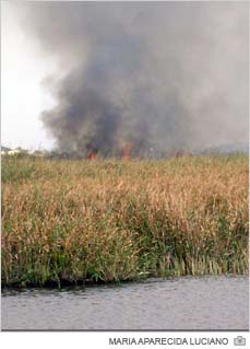 Parte da vegetação no entorno da Lagoa do Rincão está em combustão. O incêndio atinge uma área de banhado habitada tanto por aves quanto capivaras. O fato foi observado por agentes da Colônia de Pescadores na manhã desta terça-feira, dia 21. E tão logo percebido foram acionados o Corpo de Bombeiros, Polícia Ambiental e a Fundação do Meio Ambiente de Içara. “Os bombeiros rondam a região mas não conseguem emitir ação”, relata, com preocupação, a secretária Maria Aparecida Luciano.
