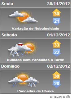 Neste sábado uma frente fria avança pelo litoral de Santa Catarina e provoca aumento de nebulosidade e chuva com trovoadas inicialmente do Oeste ao Litoral Sul. Depois também nas demais regiões entre a tarde e noite. Temperatura elevada com sensação de ar abafado.