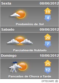 Ainda conforme informações da Epagri/Ciram, no domingo e segunda-feira surge o Sol entre nuvens e chance de chuva isolada em Santa Catarina. Especialmente entre a tarde e noite. Temperatura em elevação. Vento de nordeste, fraco a moderado com rajadas. Os índices variam nestes próximos dias dos -3 aos 18ºC.