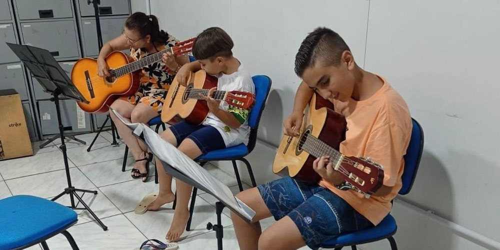 Estão disponíveis aulas de violão, flauta, balé, jazz, canto e teatro