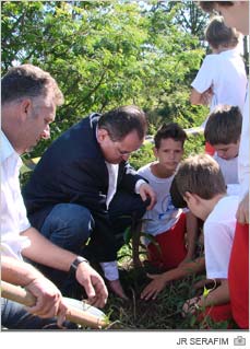 Acompanhados do prefeito Gentil Da Luz, estudantes das escolas Quintino Rizzieri, Maria Arlete Lodetti e Lúcia De Luca realizaram nesta quarta-feira, dia 27, o reflorestamento de 2 mil metros quadrados às margens da linha férrea no bairro Tereza Cristina. A mobilização preparada pela Fundação Ambiental de Içara envolveu mais de 100 alunos, com a colaboração ainda da Secretaria de Agricultura, de Educação e Epagri.