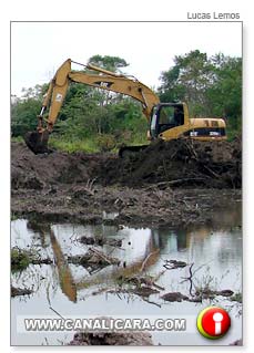 Com o apoio da Polícia Militar, a Fundação do Meio Ambiente de Içara (Fundai) embargou na tarde desta terça-feira, dia 13, uma estrada em construção na comunidade de Esplanada, na margem da BR-101. Conforme o fiscal Múcio Carlos Bratti Júnior, os responsáveis pela obra não tinham autorização para o corte da mata. E, por causa do desmatamento provocado, também foram multados em R$ 50 mil. A via projetada por uma empresa de fora da cidade serviria para o escoamento da extração de argila das barreiras locais.