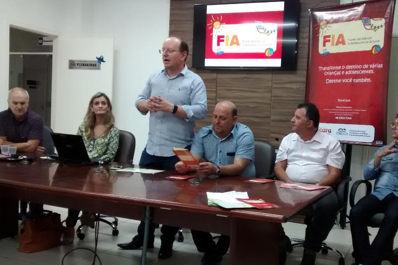 O imposto de renda de pessoas físicas e jurídicas já pode ser destinado ao financiando de projetos e ações voltados à promoção e a defesa dos direitos da infância e adolescência. O anúncio foi realizado aos vereadores de Içara nesta semana. “O primeiro e importante passo foi dado. O FIA está implantado. Agora precisamos fazer um trabalho forte e eficaz de sensibilização para envolver o maior numero de pessoas neste belo projeto”, destaca o vice-prefeito, Sandro Giassi Serafin.